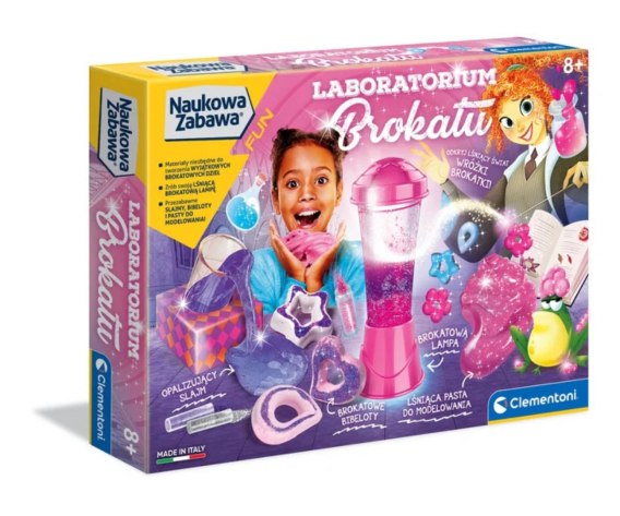 Zestaw Clementoni Laboratorium Brokatu 50700 to kreatywne laboratorium naukowe, które pozwala dzieciom na tworzenie błyszczących ozdób, biżuterii i dekoracji. Dzięki prostym reakcjom chemicznym, dzieci mogą tworzyć różnorodne przedmioty, takie jak zawieszki, naszyjniki czy breloczki, personalizowane brokatem i cekinami. Zawartość zestawu obejmuje m.in. specjalną maszynkę do wycinania, formy, brokat, barwniki oraz instrukcję krok po kroku. Produkt jest bezpieczny, nietoksyczny i przeznaczony dla dzieci powyżej 8. roku życia.