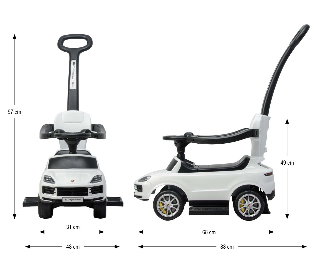 🏎️ Jeździk z rączką Porsche Cayenne Milly Mally - auto dla dzieci 12-36 miesięcy